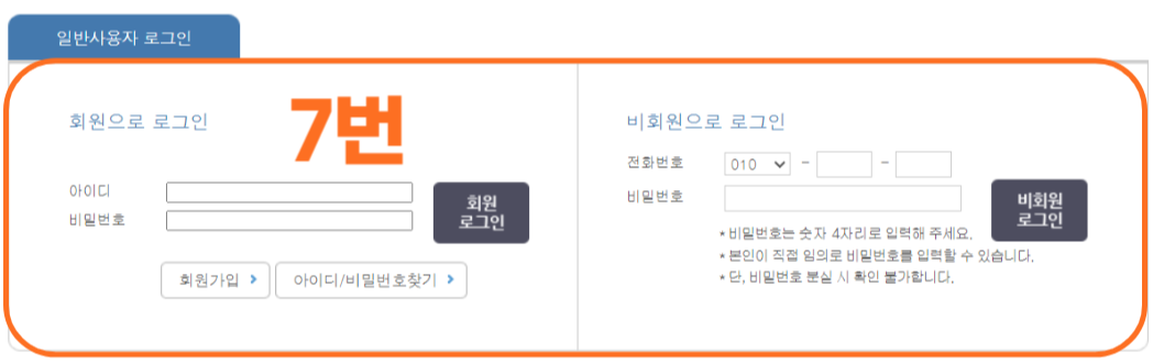아이디가 없을 경우 비회원으로 로그인도 가능합니다. 이때 비밀번호는 꼭 메모해 두셔야 재발급이 가능합니다.
