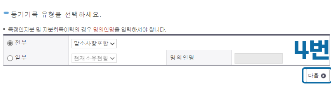 4. 말소사항 포함은 말소된 사항 전부가 포함된 것입니다.