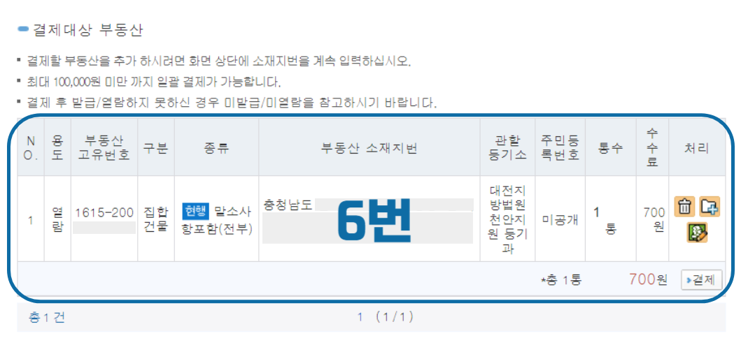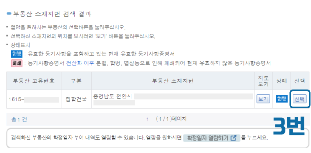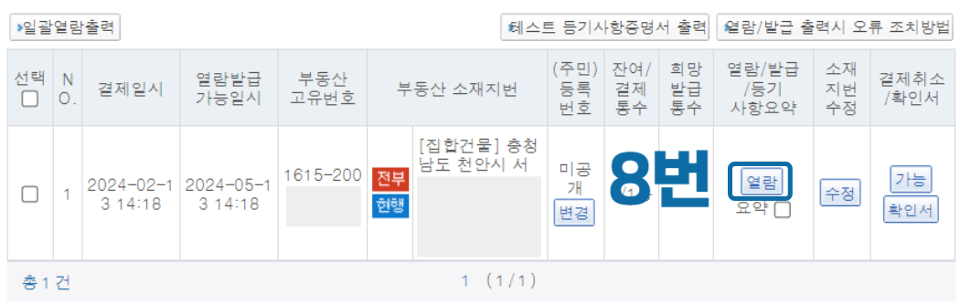 8. 열람을 눌러 등기 사항 전부 증명서를 확인합니다.