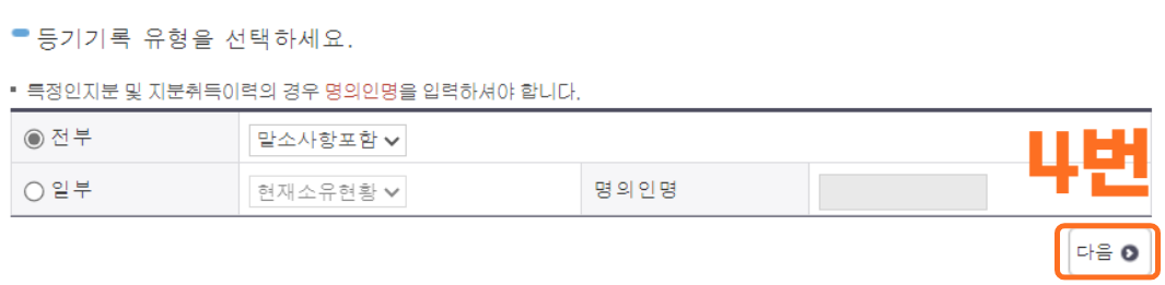 말소사항포함이란 과거의 기록까지 모두 보겠다는 뜻입니다. 다음을 눌러줍니다.