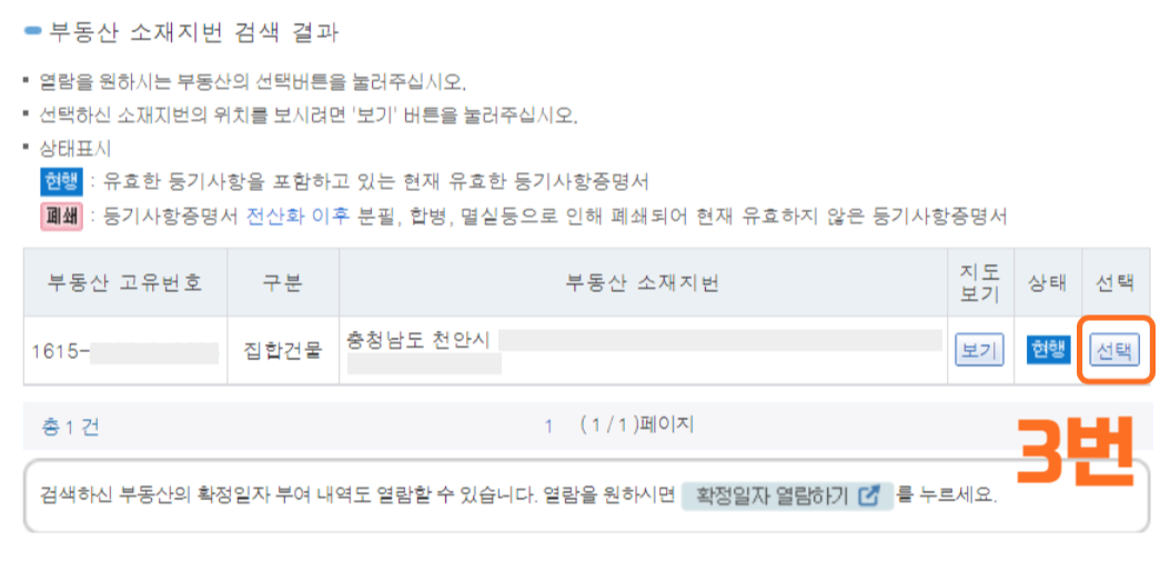 3. 발행을 원하는 주소를 선택해 다음으로 넘어가 줍니다. 원하는 주소가 아닐 경우 다시 검색합니다.
