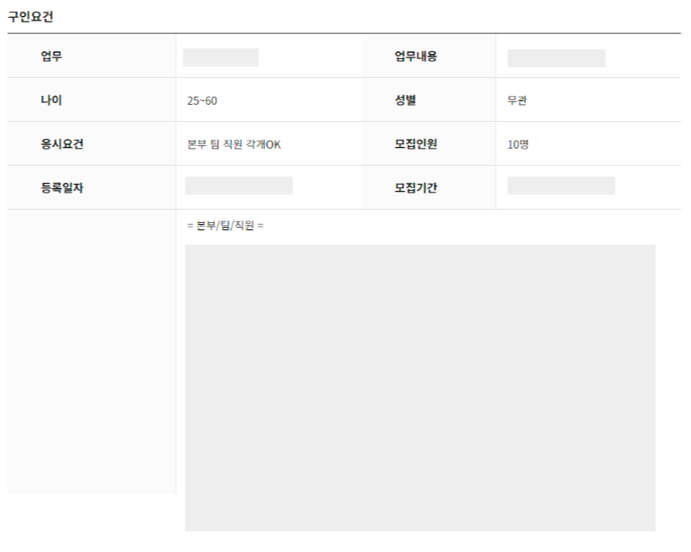원하는 일자리를 클릭하면 구인요건에 대한 설명이 있습니다.
