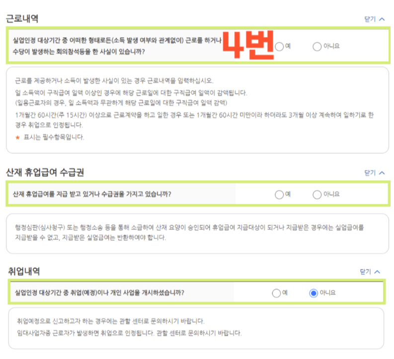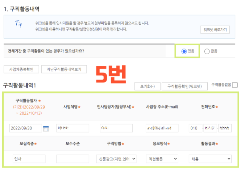 5. 구직활동이 있는 경우 체크해 줍니다.
