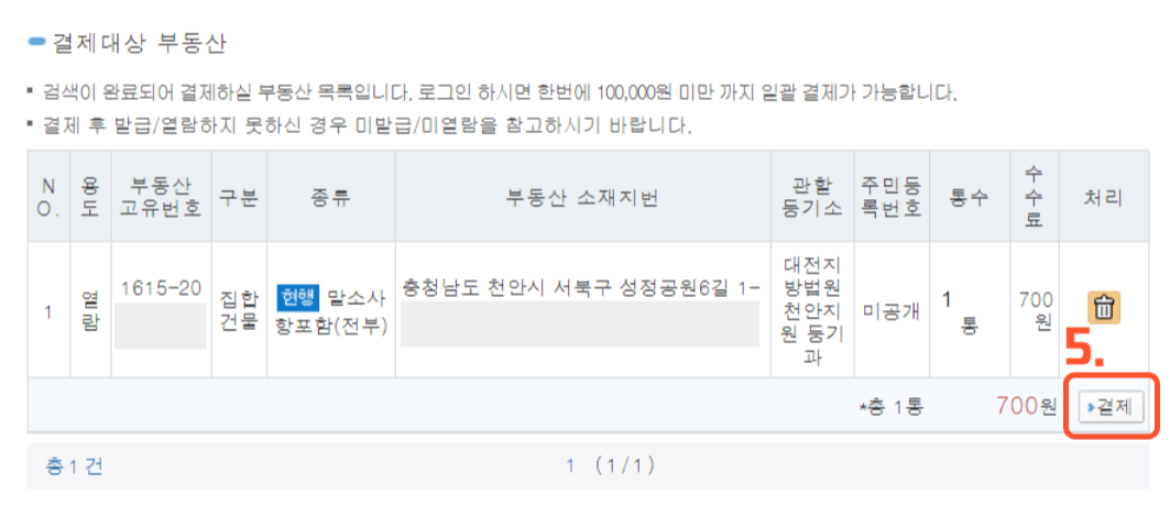 5. 결제를 클릭해 700원을 결제해 주면 끝! 이제 우리집은 안전한지 함께 체크해 보도록 하겠습니다.