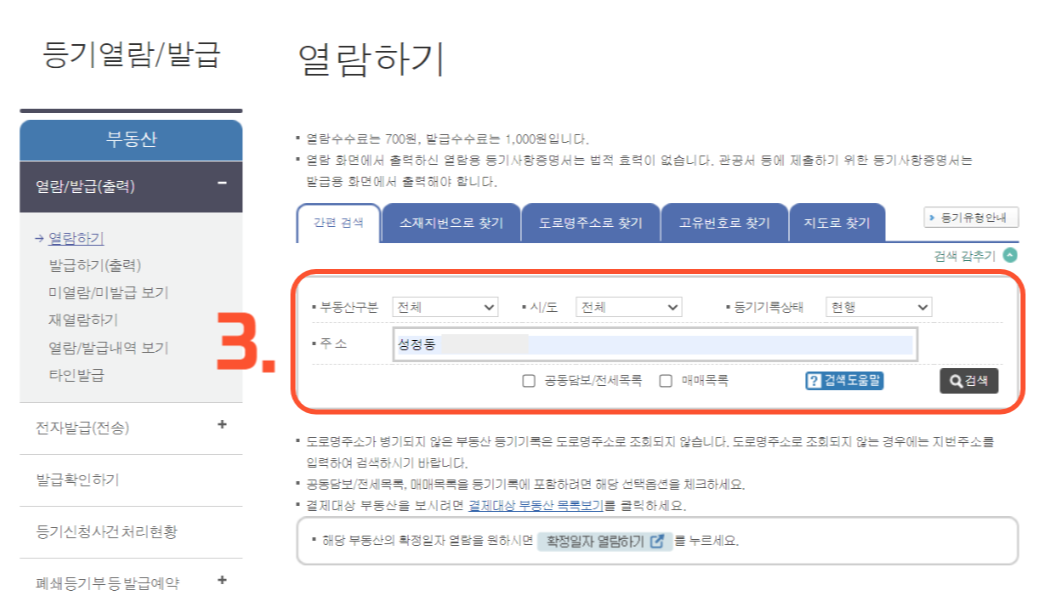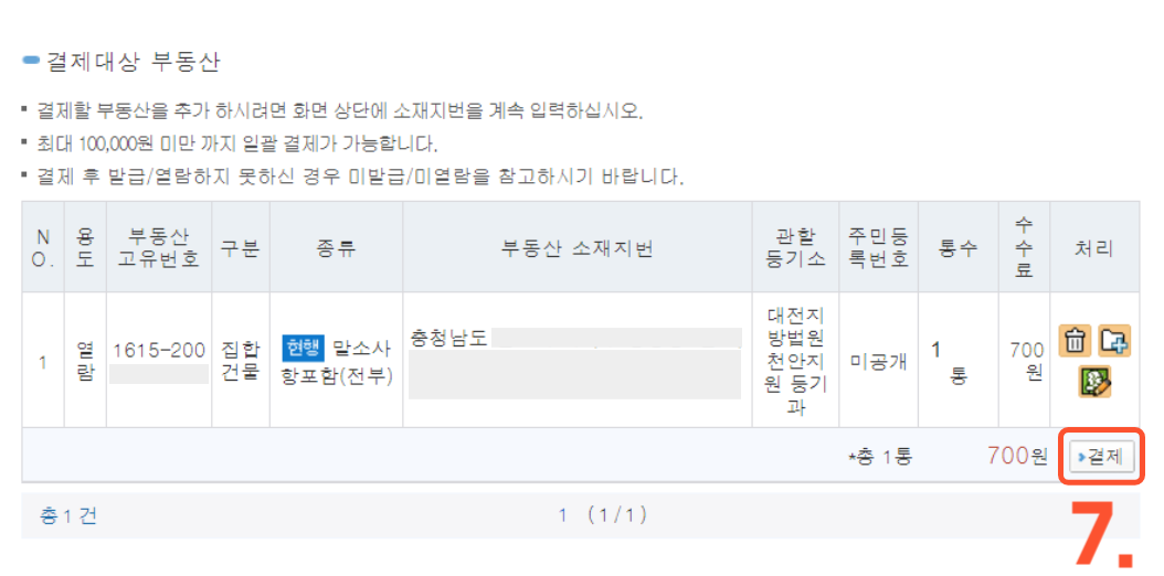 5. 말소사항포함이 기본값이며 그대로 두고 다음으로 넘어갑니다.