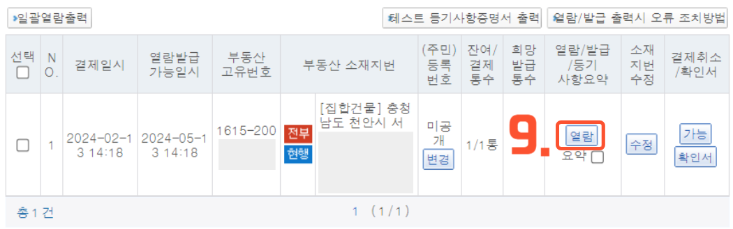 9. 열람을 클릭하고 PDF 파일을 저장해 줍니다.
